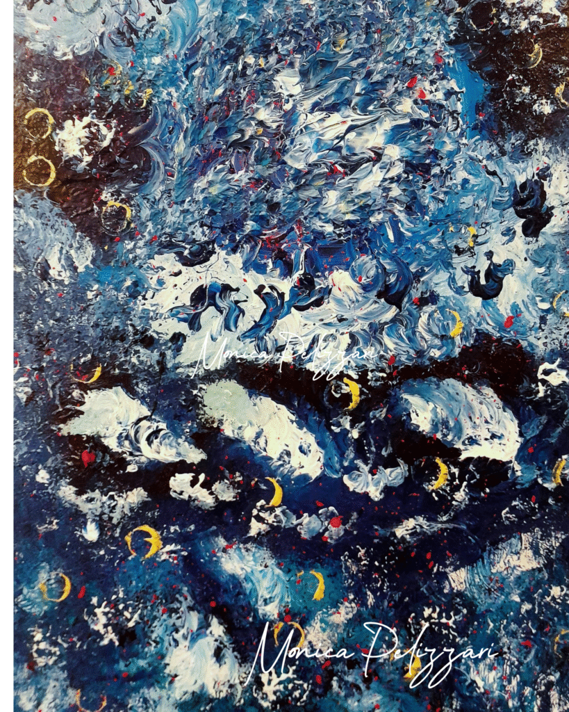 Acrilico su tela 60×80 Quando ho creato quest’opera mi sono sentita parte di qualcosa di più grande.Ogni segno, ogni colore era come una stella che prendeva il suo posto, fino a formare unacostellazione.Per me rappresenta questo: la certezza che, anche quando ci sentiamo dispersi, ognuno dinoi ha un punto di luce che lo tiene legato […]
