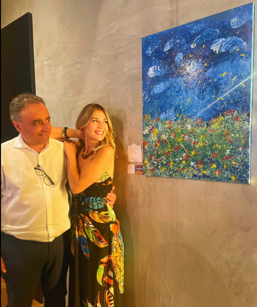 Incontrare le opere di Monica a Torino mi ha insegnato che la loro verità si manifesta nella visione dal vivo. Ogni dipinto regala un’emozione intensa, quasi il battito di un respiro che accompagna lo sguardo e scandisce il tempo interiore. E quando all’opera si unisce la presenza dell’artista, allora tutto diventa totale perché il suo entusiasmo e la sua passione avvolgono e trasmettono energia pura.